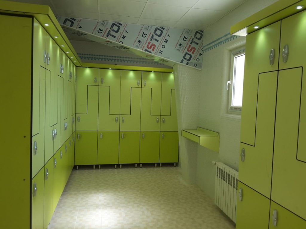 سایر تجهیزات محیط رختکن از قبیل نیمکت، جاکفشی، کنسول و غیره از جنس HPL قابل اجرا و کاملا استاندارد و مقاوم بوده و به زیبایی و کارآیی این فضاها می افزاید.